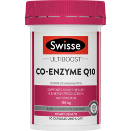 Swisse Ultiboost Co-enzyme Q10 is a premium quality, one-a-day formula to help maintain cardiovascular health and support healthy antioxidant activity.