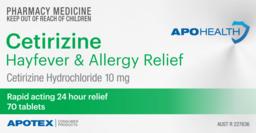 APOHEALTH Cetirizine Hayfever & Allergy Relief Tablets 70