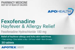 APOHEALTH Fexofenadine 180 Hayfever & Allergy Relief Tablets 30